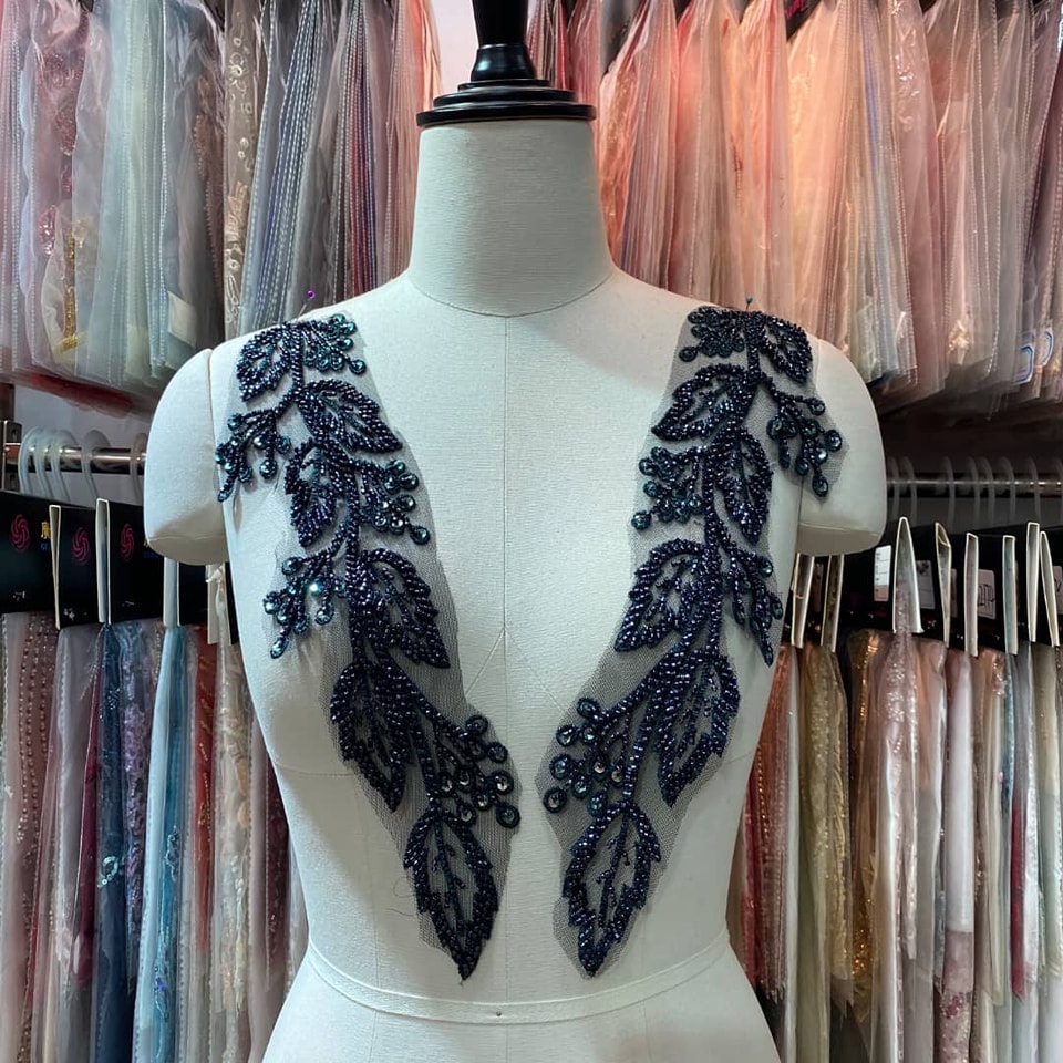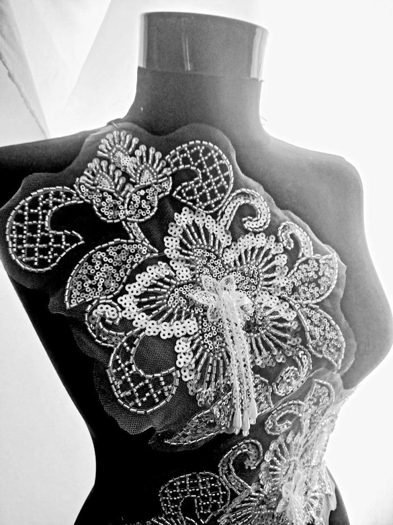 Aplicatie negre cu margele pe negru. 75 lei (pret pentru 2 parti stanga si dreapta)