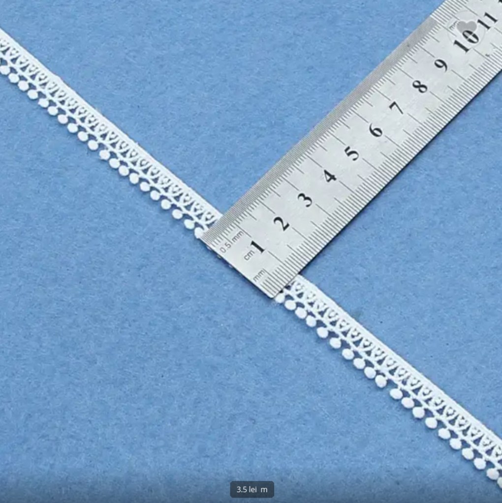 Dantela decupabila mov violet din margele. 350 lei m/stoc 0.8m
