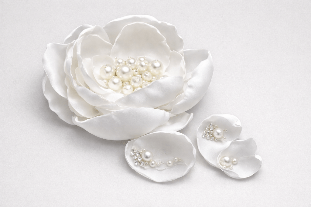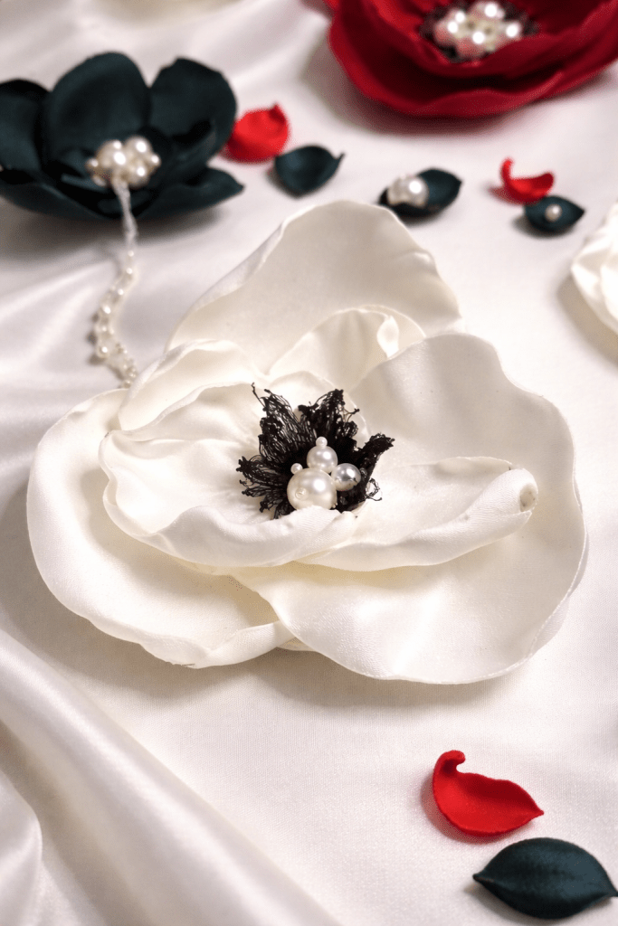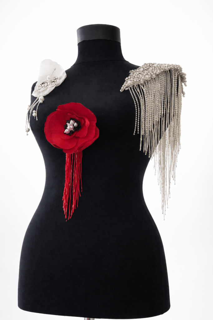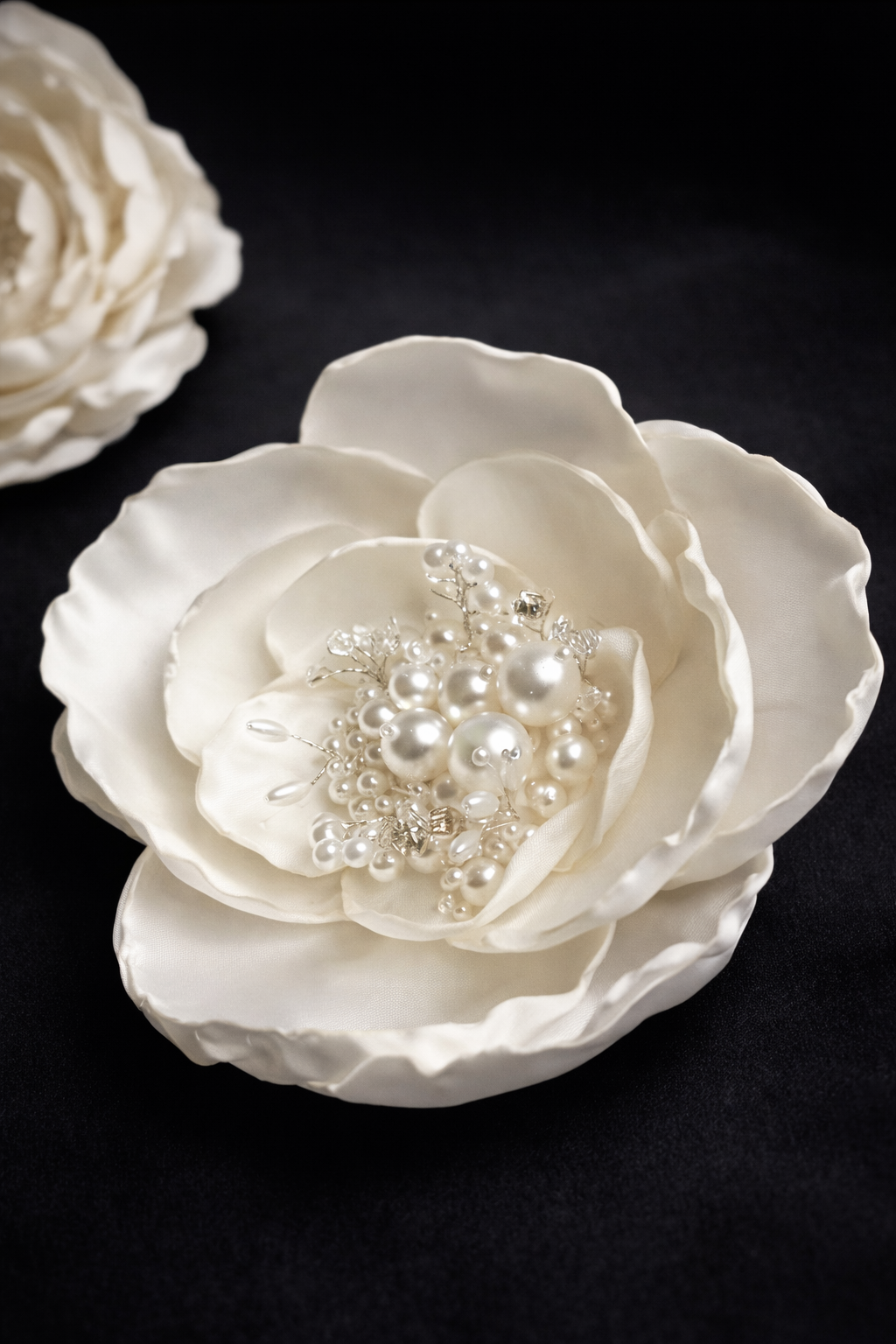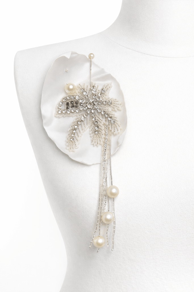 Epolet cu Flori 3D ivoar, cu perle si margele 5D,