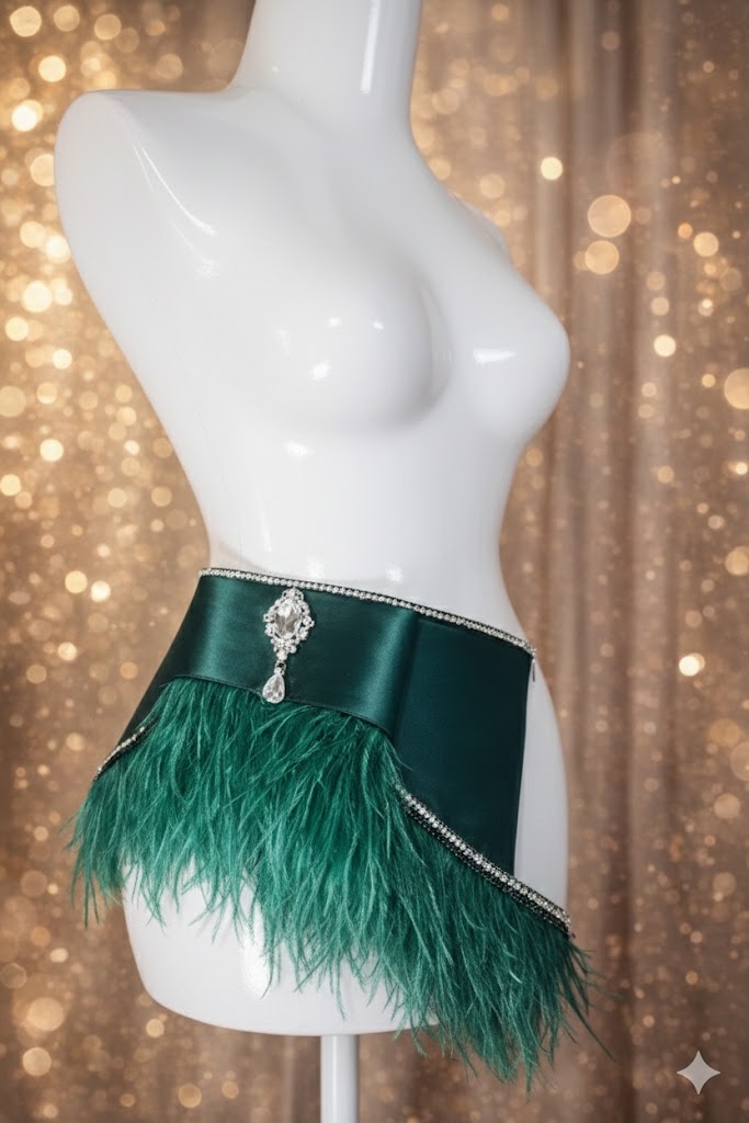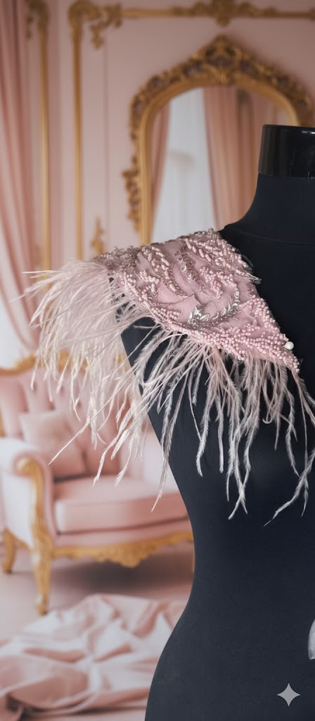 Epolet roz prafuit din margele, 30x9cm, si pene 12 cm.