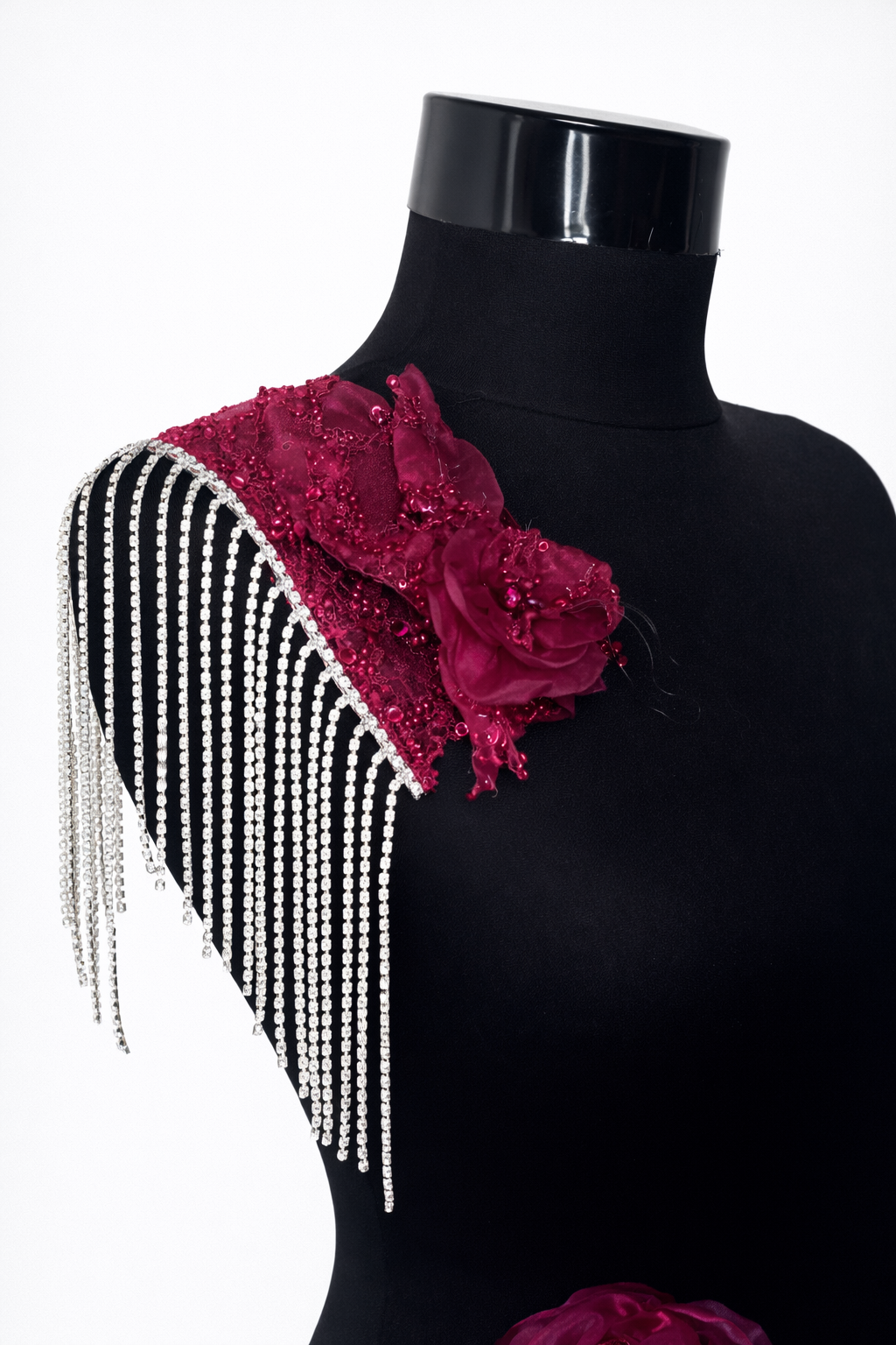 Epolet cu floare si franjuri din cristale, magenta, 24x20cm 155 lei buc