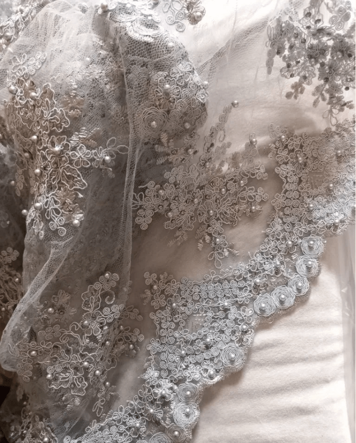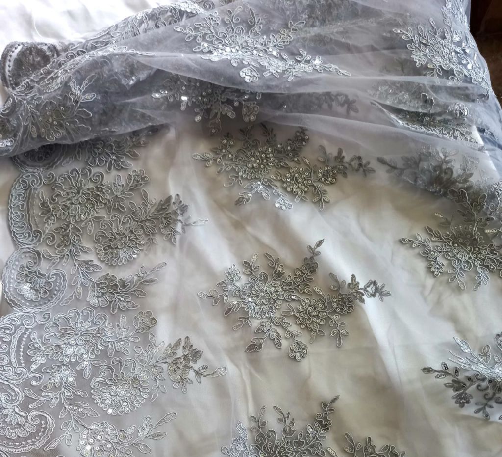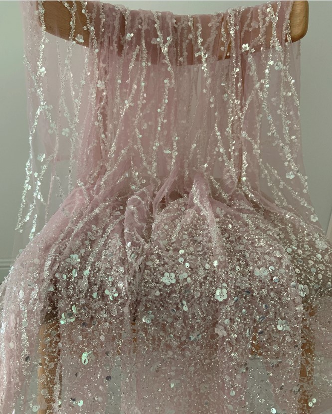 si dantela cu paiete si perle