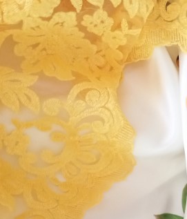 Dantela galbena cu perle, margele si paiete
