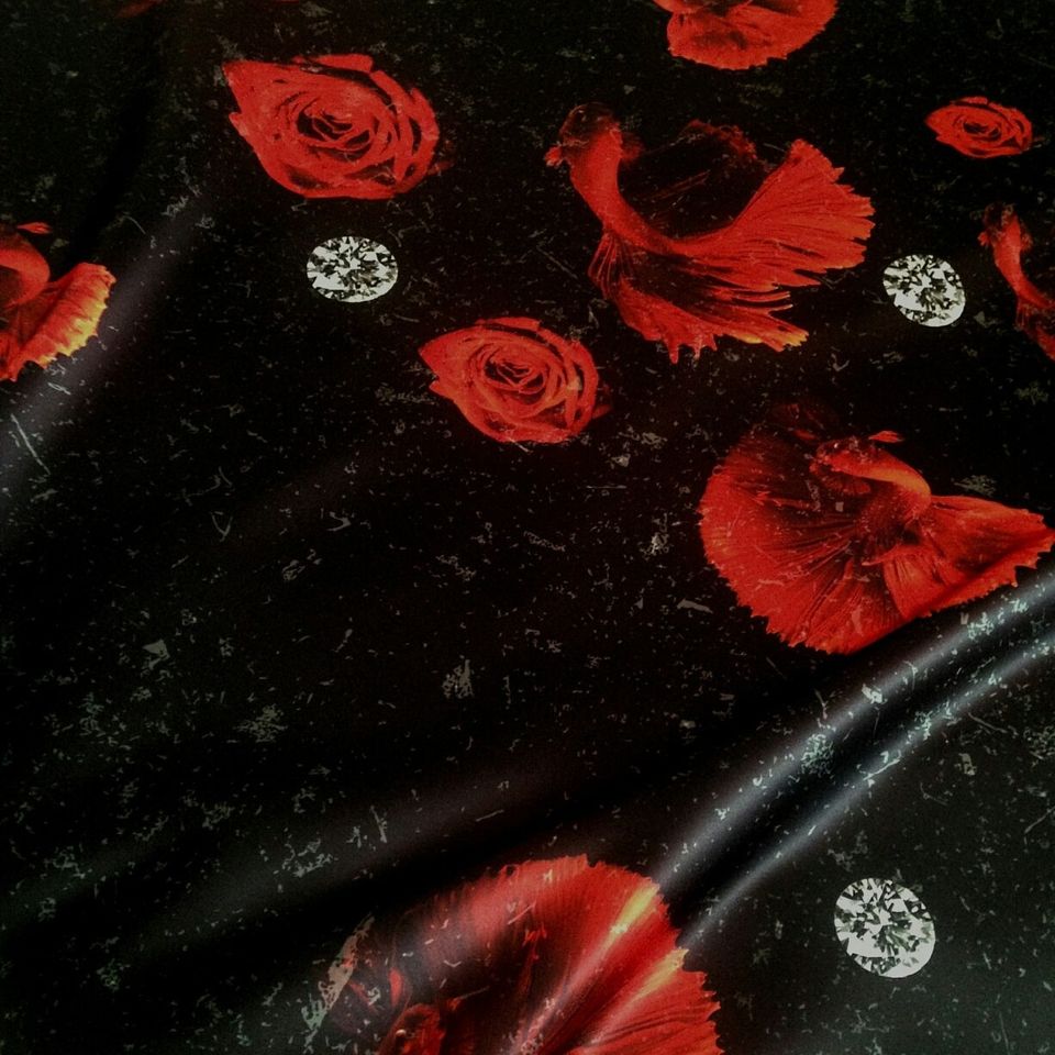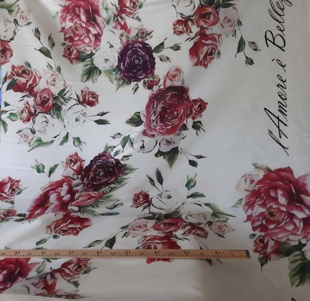 Satin imitatie de matase cu bujori,