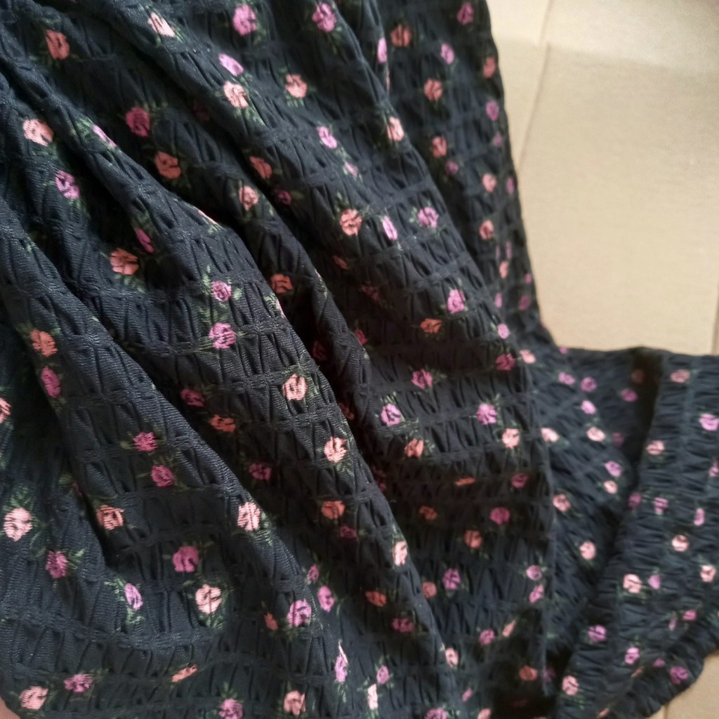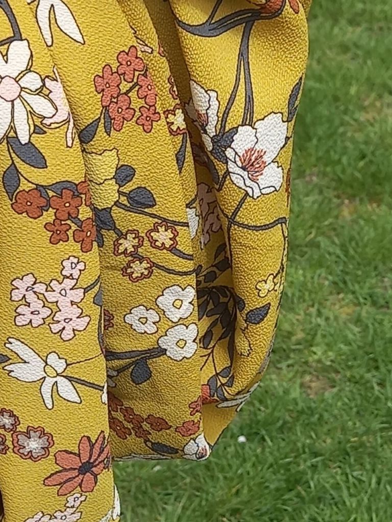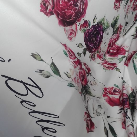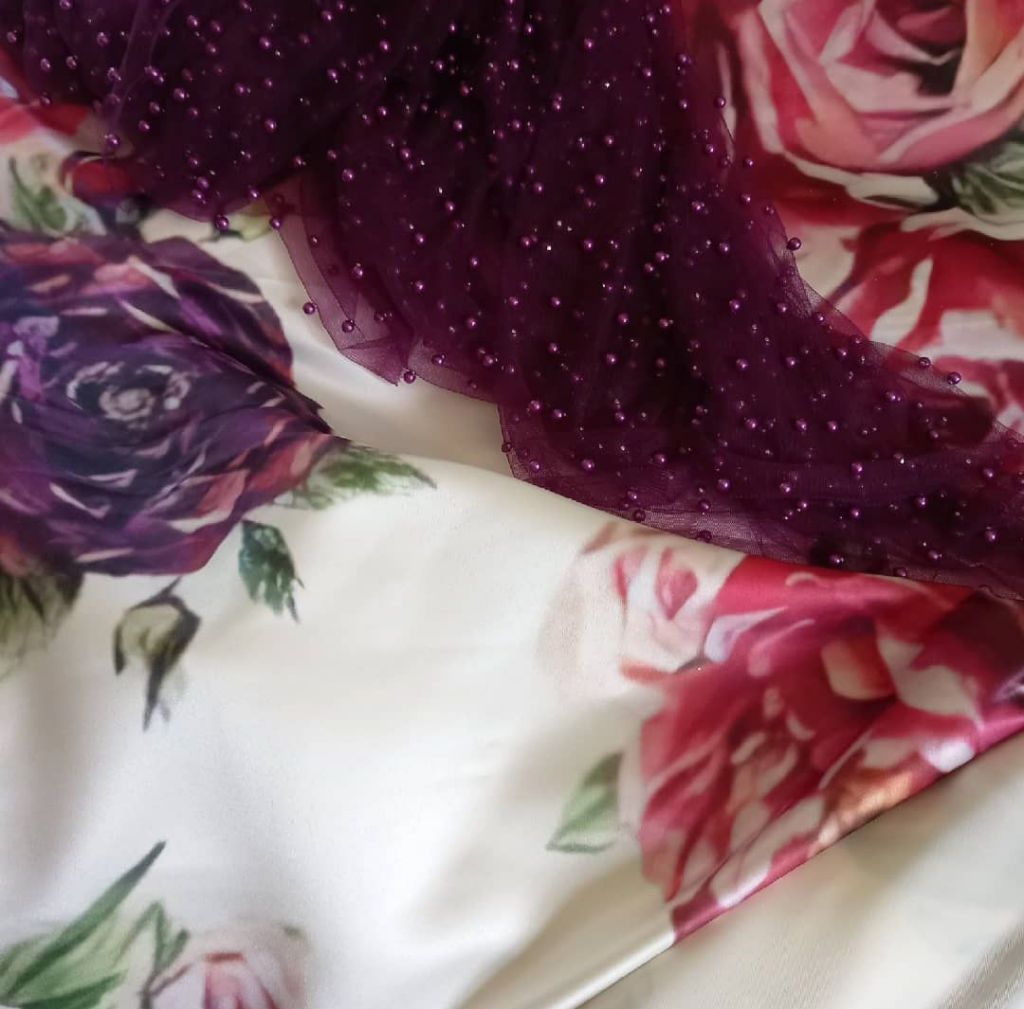 Voal cu imprimeu floral, mat, puțin creponat, pentru un look similar,