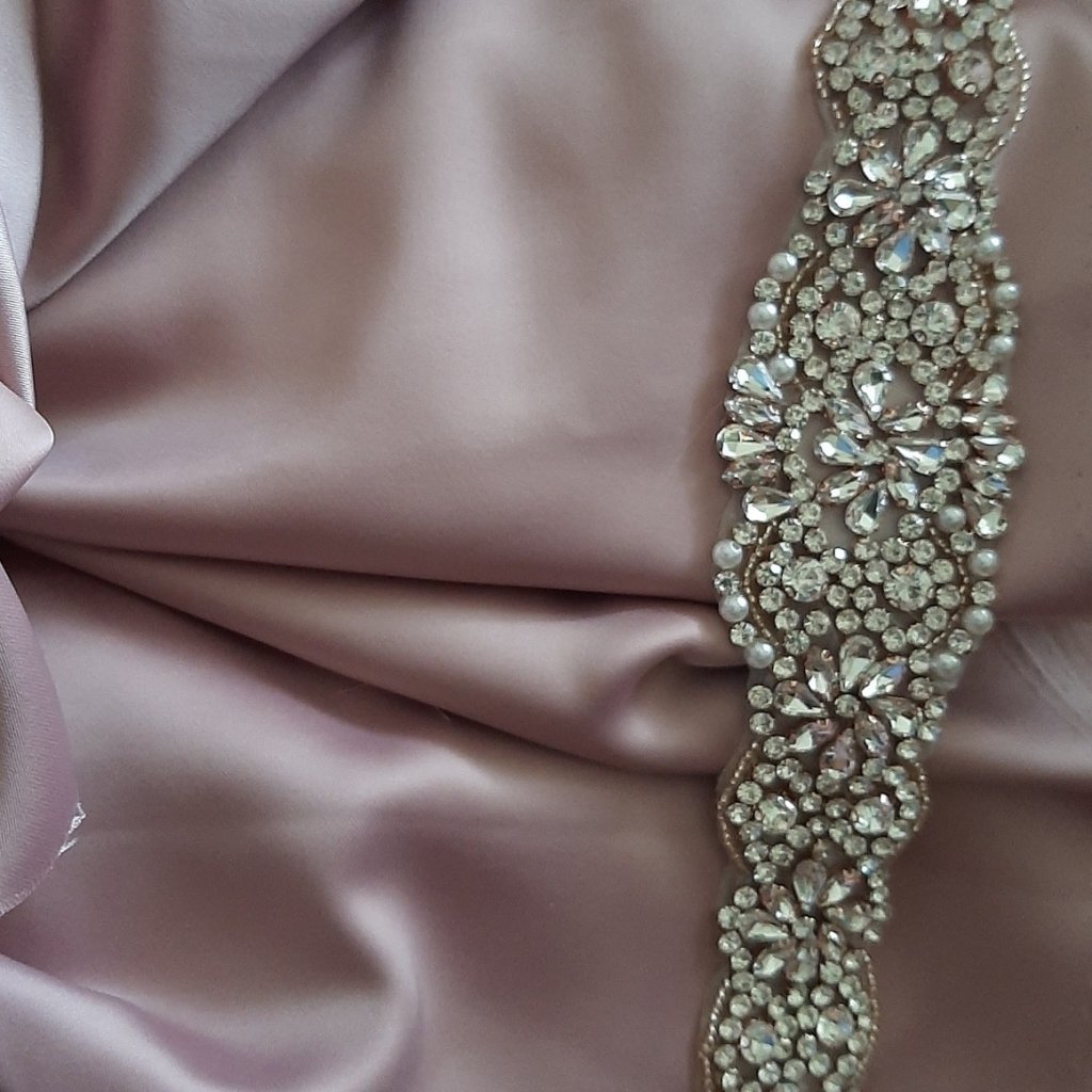 Dantela cu cristale din sticla, strasuri si perle, pe tull bej nude 250 lei m