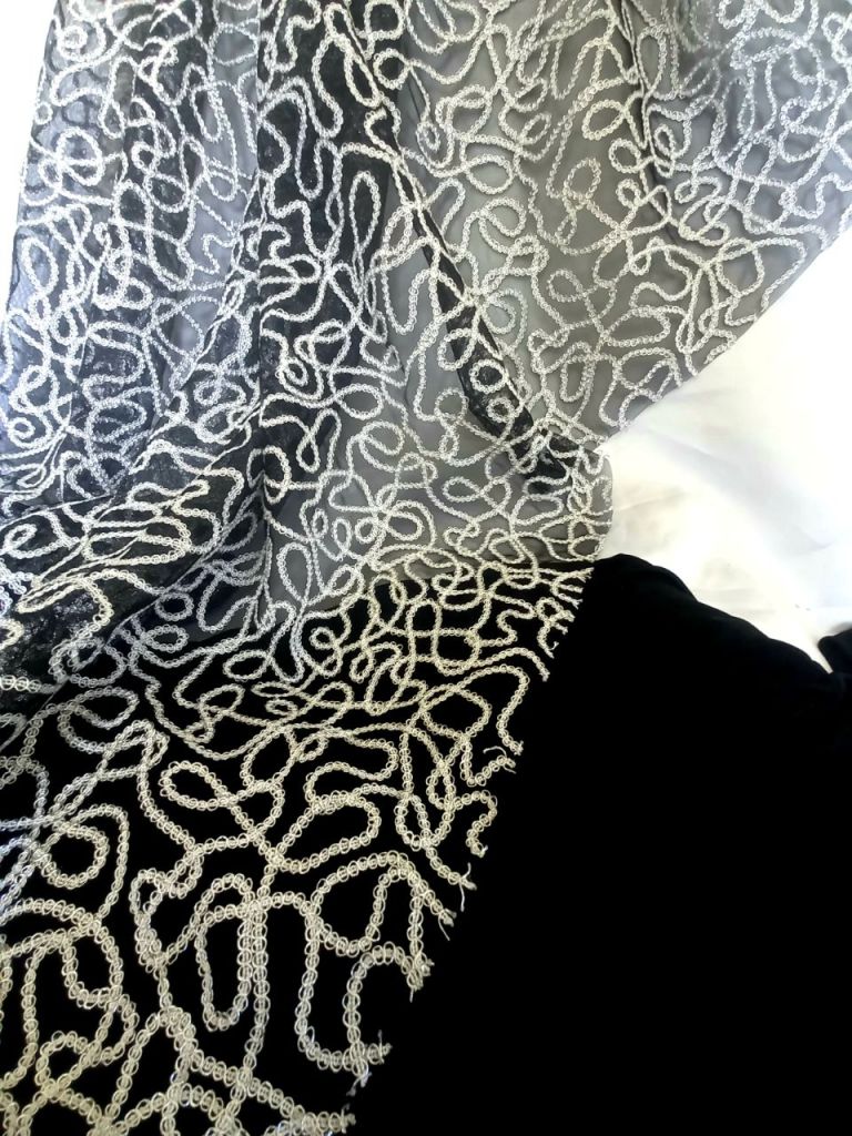 Dantela cu perle, margele si paiete. 150 lei m